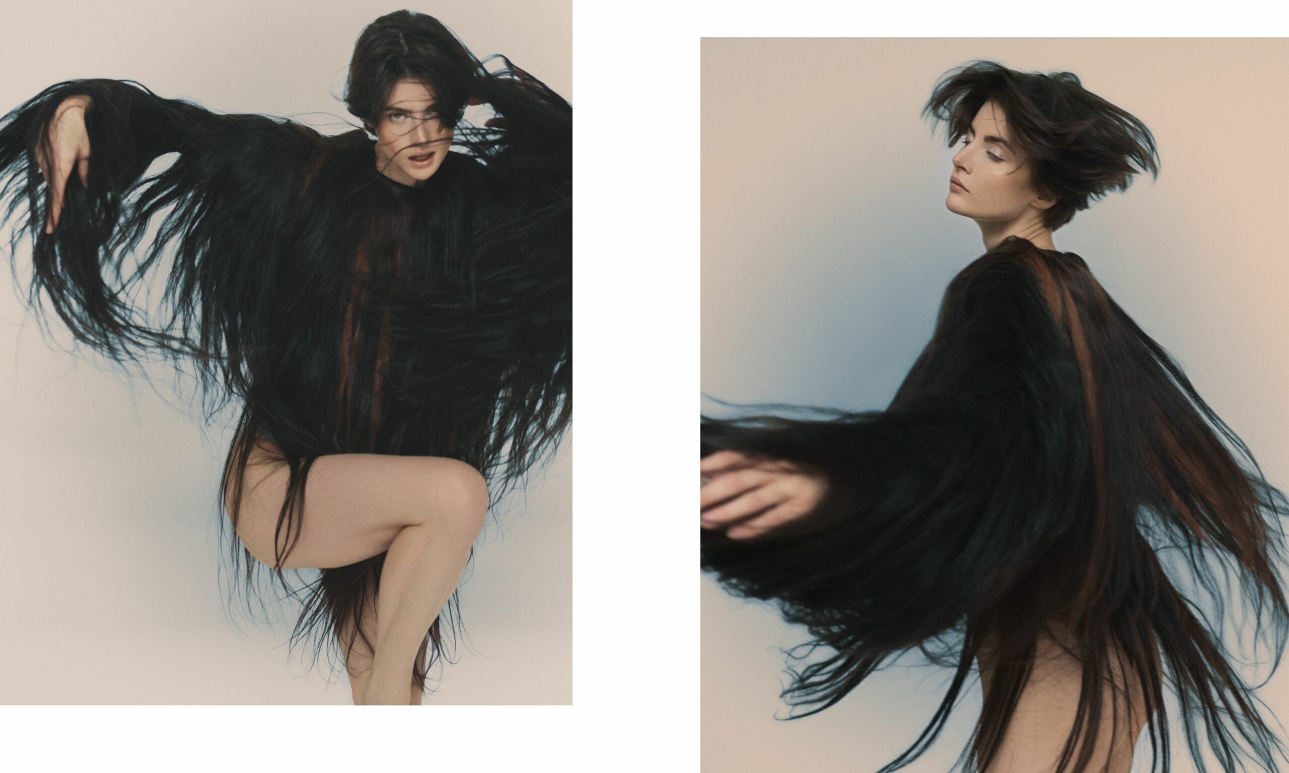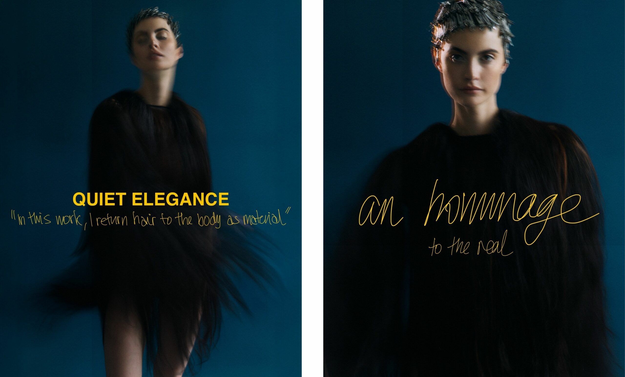 Im Editorial von Volkan Özacardi wird eine Welt geschaffen, in der Mode neu gedacht wird: komplette Looks aus Haar als ausdrucksstarke, sinnliche Verkörperung von Identität. Die Bildwelt zieht sofort hinein in eine Atmosphäre, die den Körper vollkommen anders lesbar macht.